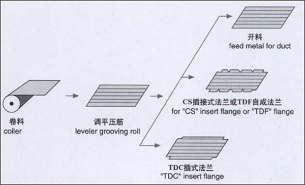 生產二線是由上料架、調平壓筋機、沖尖口和沖方口機、剪板機所組成。電器控制部分采用全電腦控制,該控制系統具有閉環反饋系統,生產精度和穩定性明顯升高。其大工作速度為10米/分鐘,長度誤差為±0.5mm/m,對角線誤差為±0.8mm/m,上料架可根據客戶的要求配套。